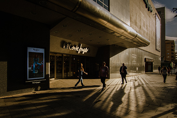 El edificio de El Corte Inglés de Badajoz es un icono comercial y arquitectónico de la ciudad. Su imponente presencia, caracterizado por líneas sólidas, juegos de reflejos y sombras, ofrece en su fachada un argumento para la creatividad fotográfica.